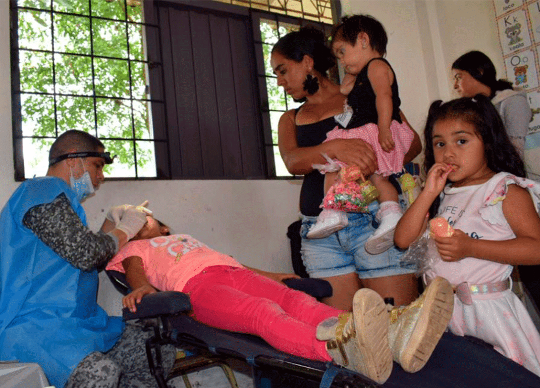 Around 500 people, including pregnant women, older adults, men and children, benefited from a Development Support Activity led by the Colombian Air Force and the Professional Officers of the Reserve of the Air Combat Command No 4.