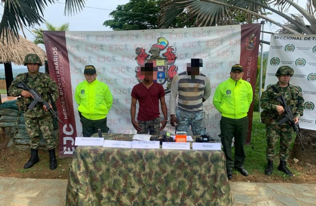 In military operations, troops of the National Army, in coordination with the Colombian Air Force, which had the support of the National Police and the Attorney General's Office, and in response to the recommendations of early warning No. 003 In 2019, two individuals, alias Jhonatan, alleged finance ringleader, and alias Odín, third ringleader of the José Antonio Galán front, of the ELN Organized Armed Group, were captured.