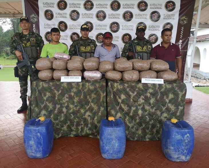 Troops of the Twenty-Ninth Brigade of the Third Division of the National Army, in compliance with the Heroes of Liberty Bicentennial Plan, captured three individuals who were traveling in a vehicle, with approximately 165 kilograms of narcotics, which apparently belonged to the finances network of the Jacobo Arenas substructure of the organized armed group GAO-r.