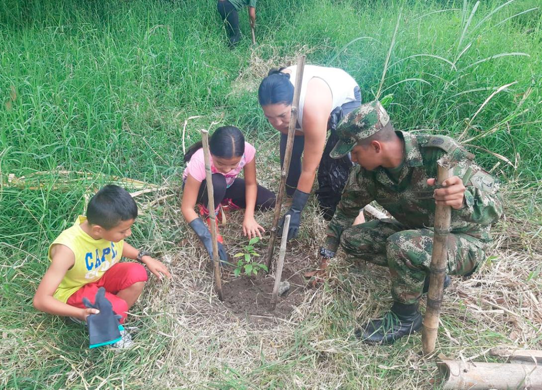 About 800 people along with soldiers of the National Army got together to plant wild trees, and clear green areas in an activity of beautification and care of the environment in Popayán.