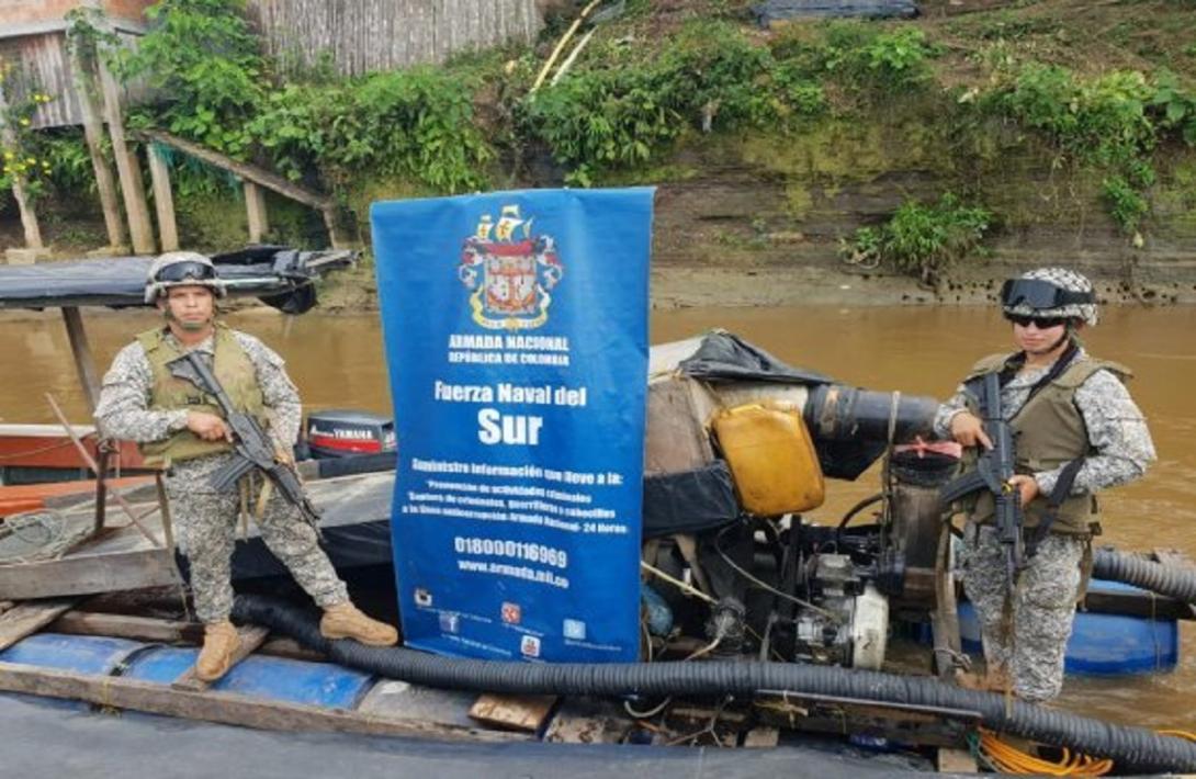 Units of the Colombian Navy in a joint operation of interception and river security, with the National Army and the Air Force, immobilized a floating structure that was being used as dredge for the exploitation of illegal mining, in the sector of El Refugio, municipality of Curillo, in Caquetá.