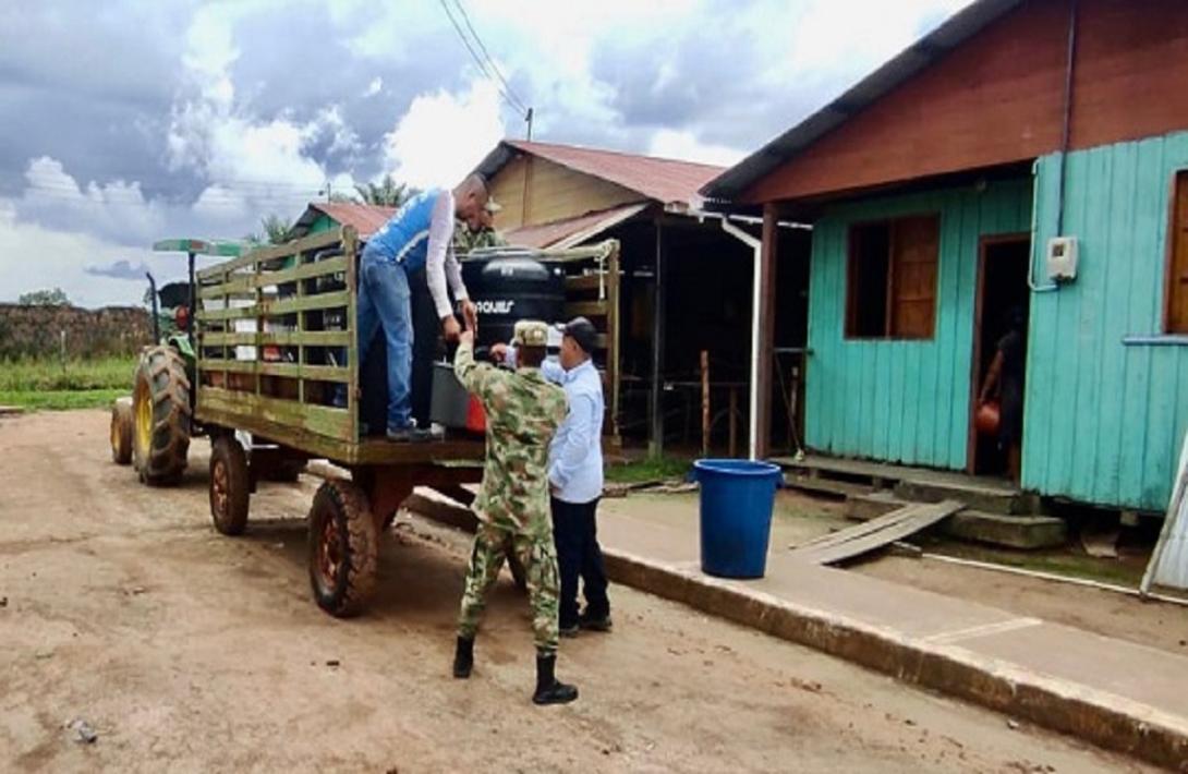 For 48 hours, soldiers of the National Army put at the service of the people a tractor-type vehicle, unique in the municipality, given the jungle conditions and logistical limitations, so that it transported water along the main roads of Carurú and families could carry out tasks typical of everyday life. The police station in the same way was benefited.