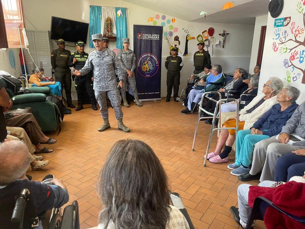 Los integrantes de la Sección de Acción Integral del Comando Aéreo de Combate No. 7 lideraron una entretenida jornada con el apoyo de la Policía Nacional para ofrecer a 25 abuelitos de la Fundación Años Maravillosos de la ciudad de Popayán, un día diferente y cargado de alegría.