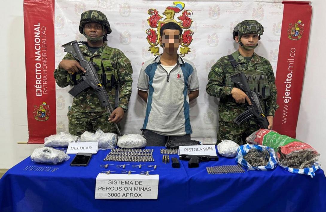 En desarrollo de operaciones militares, soldados del Ejército Nacional, de manera coordinada con la Policía, lograron la captura en flagrancia de alias Gerardo, presunto integrantes del grupo armado organizado ELN, en la ruta Cúcuta-Tibú, Norte de Santander.
