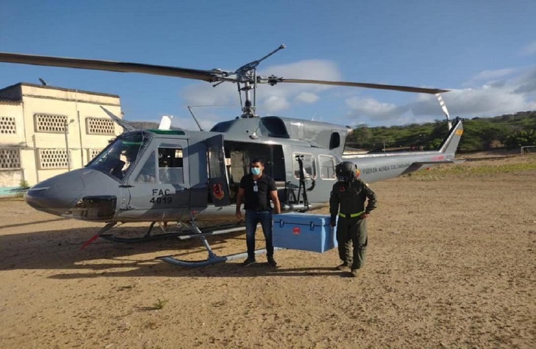 La zona rural del municipio de Uribia recibió la primera dote de vacunas que requieren una única aplicación luego de una coordinación entre la Secretaría de Salud del municipio y su Fuerza Aérea Colombiana, logrando transportar 8.000 vacunas desde Uribia hasta el Hospital de Nazareth, el cual es el punto de salud más cercano para la atención a las comunidades Wayúu en la Alta Guajira.