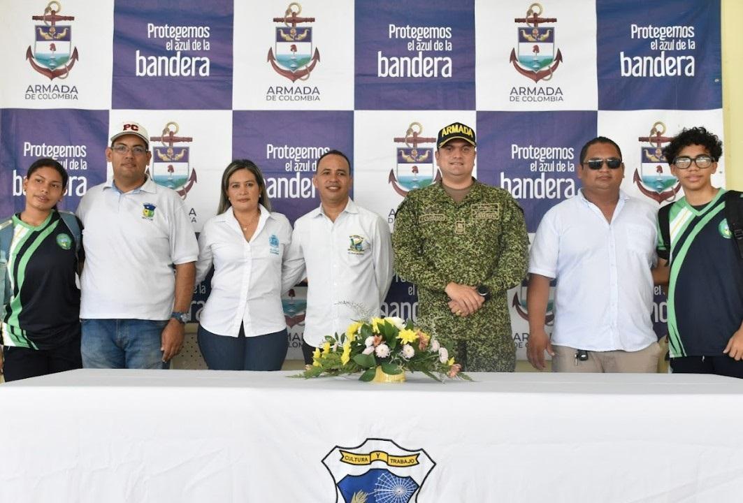 Tripulantes de la Brigada de Infantería de Marina No.1, llegaron hasta la Institución Educativa Técnico Agropecuario Carlos Arturo Verbel Vergara, Institución Educativa Indígena El Martillo y la Institución Educativa Pio XII, para notificarles el inicio de este programa en el cual se beneficiarán 2.255 estudiantes y docentes, así como 2.860 personas que habitan en los alrededores de los centros educativos, proporcionándoles en los próximos meses, el acceso a agua potable de calidad.