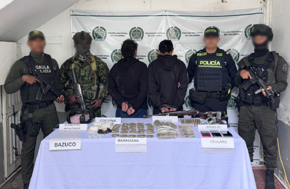 El resultado se obtuvo en una operación coordinada que permitió la captura en flagrancia de tres personas y la incautación de material de guerra, comunicaciones y marihuana tipo creepe.