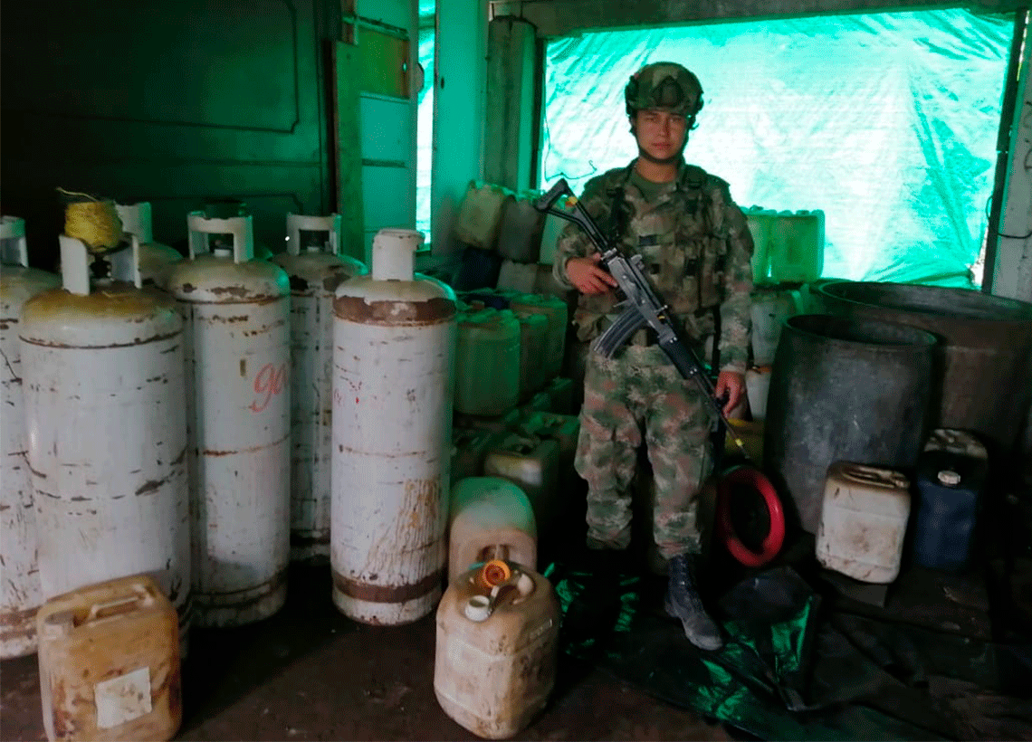 En el lugar podrían producirse hasta 800 kilos de sustancias empleadas para la producción de pasta base de cocaína avaluadas en al menos 700 millones de pesos.