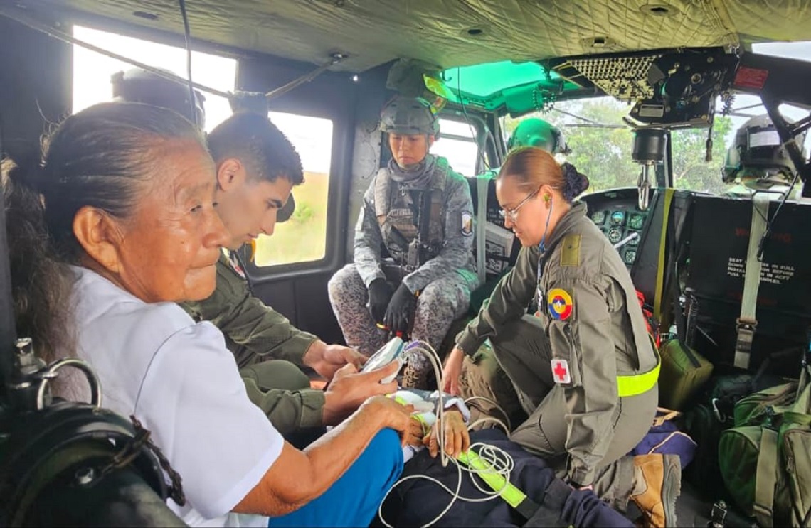 Pilotos, técnicos y personal médico de su Fuerza Aeroespacial Colombiana en conjunto con la Armada de Colombia, realizaron con éxito el traslado aéreo