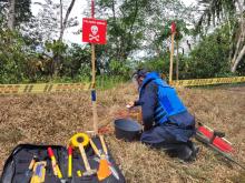 Durante la intervención en 250 metros de una vivienda, en la vereda Los Alpinos, que presentaba sospecha de minas antipersonal, soldados del Batallón de Ingenieros de Desminado Humanitario N.°