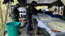 Destruido en Samaniego un gigantesco laboratorio que producía cinco toneladas de clorhidrato de cocaína al mes Continuando con la ofensiva militar, las tropas del Ejército Nacional propinaron otro golpe contundente a las estructuras al servicio del narcotráfico en el departamento de Nariño,