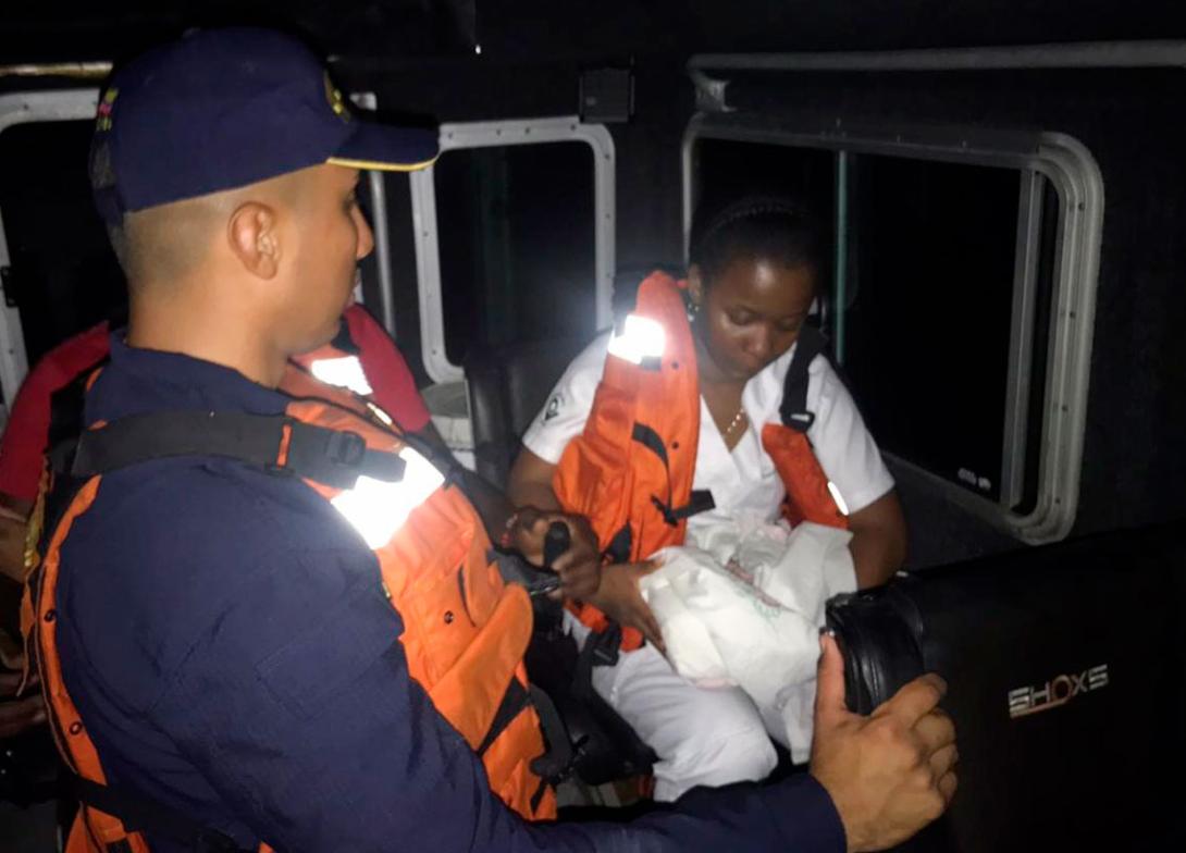 La Station de Garde côtière à Buenaventura, une unité rattachée à la force navale du Pacifique, a répondu à l'appel d'urgence fait par la ligne 146 par le centre de santé de Juanchaco, demandant l'évacuation d'urgence de la jeune fille âgée de 17 ans et de son bébé.