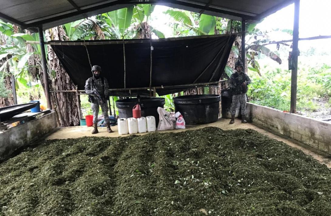 Les opérations ont été conduites dans la municipalité de San Miguel, dans le secteur connu sous le nom d’El Sabalo et dans la municipalité de Puerto Asís, dans la municipalité de Puerto Leguízamo, où les troupes de la Marine colombienne et de l’Armée nationale ont trouvé à l’intérieur des 4 laboratoires, 792 kilos d’précurseurs solides, 1 050 kilos de feuilles de coca et 133 gallons de précurseurs liquides, utilisés pour la production des stupéfiants.