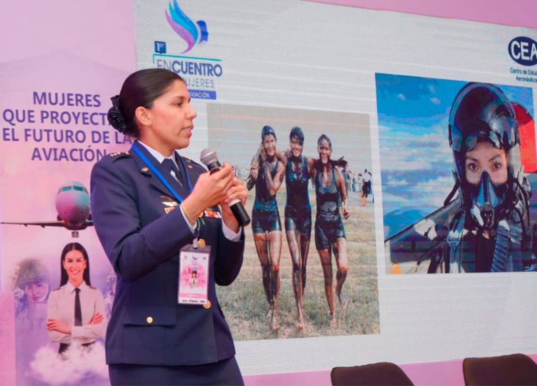 La capitaine Maria Alejandra Charry, première pilote de L'hélicoptère Black Hawk, a été chargée de représenter toutes les femmes qui ont marqué l'histoire de l'institution et ont travaillé pour l'aviation militaire, partageant son témoignage qui devienne une inspiration pour les nouvelles générations.
