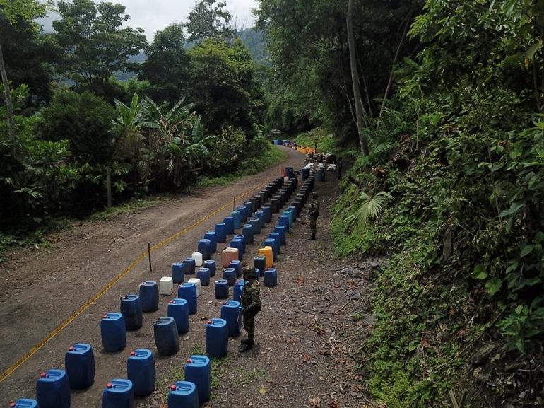 Dans une opération militaire conduite par les soldats du Bataillon d'Infanterie n ° 2 de Sucre, de la Première Brigade de l'Armée Nationale et en coordination avec la Police Nationale, dans le village connu sous le nom Cunchala, zone rurale de la municipalité de Otanche, dans l'ouest du département de Boyacá, ils ont trouvé une quantité considérable d’éléments et de précurseurs pour la production d'alcaloïdes ; le cout serait de 300 millions de pesos environ.